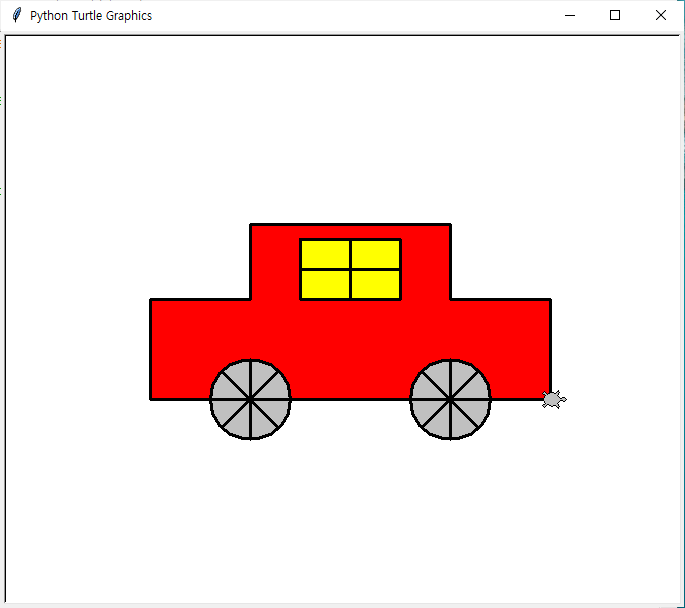 ◆ 다음과 같이 파이썬 거북이로 자동차를 그려보세요