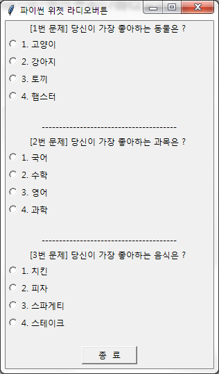[ 파이썬 위젯 라디오버튼 에제 1 ]