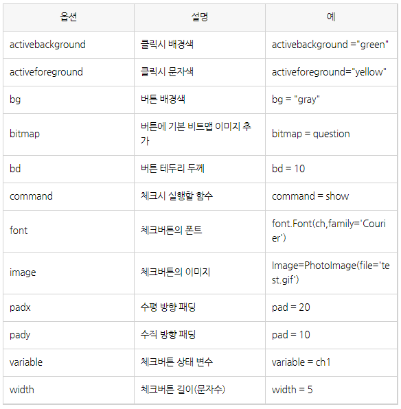 | invoke() | 체크버튼과 연결된 함수 실행 |