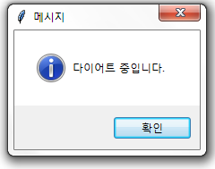 messagebox.showinfo("메시지","다이어트 중입니다.")