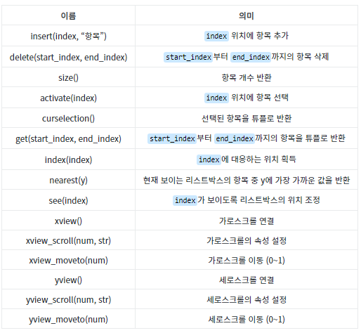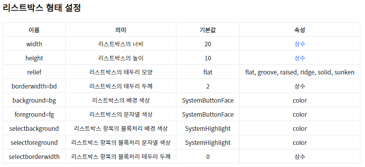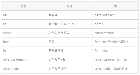 리스트박스는 리스트 항목들을 보여주는 위젯을 생성합니다.