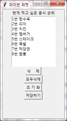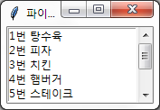 lb.insert(END, "8번 짬뽕")
