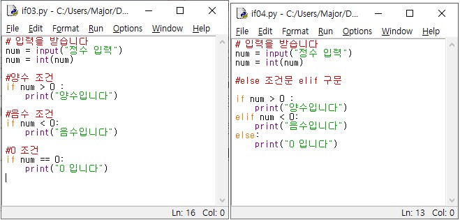 [문제1] 다음은 if문을 사용하여 양수를 입력하면 “양수입니다”를, 음수를 입력하면 “음수입니다”를, 0을 입럭하면 "0입니다“을 출력하는 프로그램입니다.