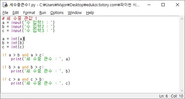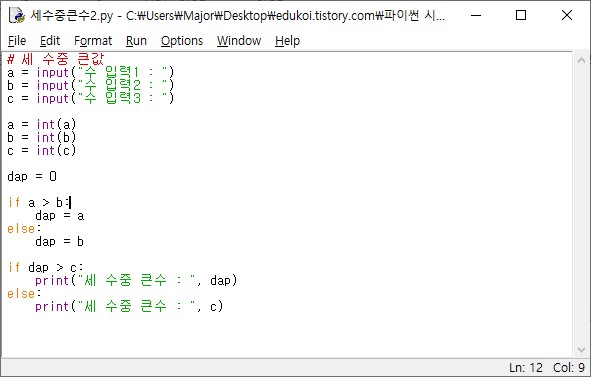 | 9. 파이썬 세 수 중 큰수 (0) | 2020.04.17 |